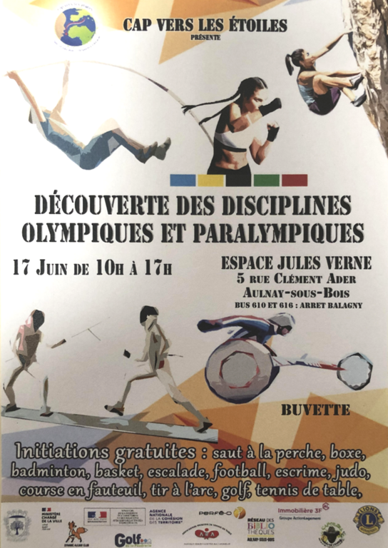 Le 17 Juin de 10h à 17h, l'APA participe à la journée "découverte des disciplines olympiques et paralympiques" organisée par l'association Cap vers les Etoiles à l'Espace Jules Verne d'Aulnay-sous-Bois.